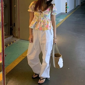 バックシャーリングフレンチフラワーブラウス R01244