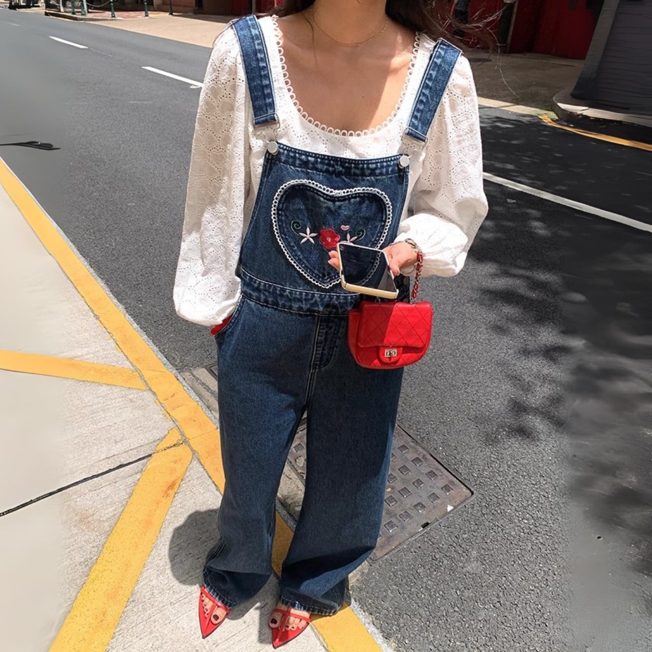 ハート×フラワーエンブロイダリーオーバーオール R01313