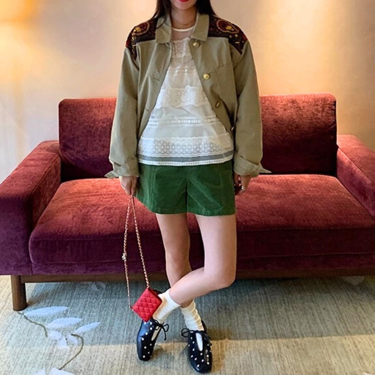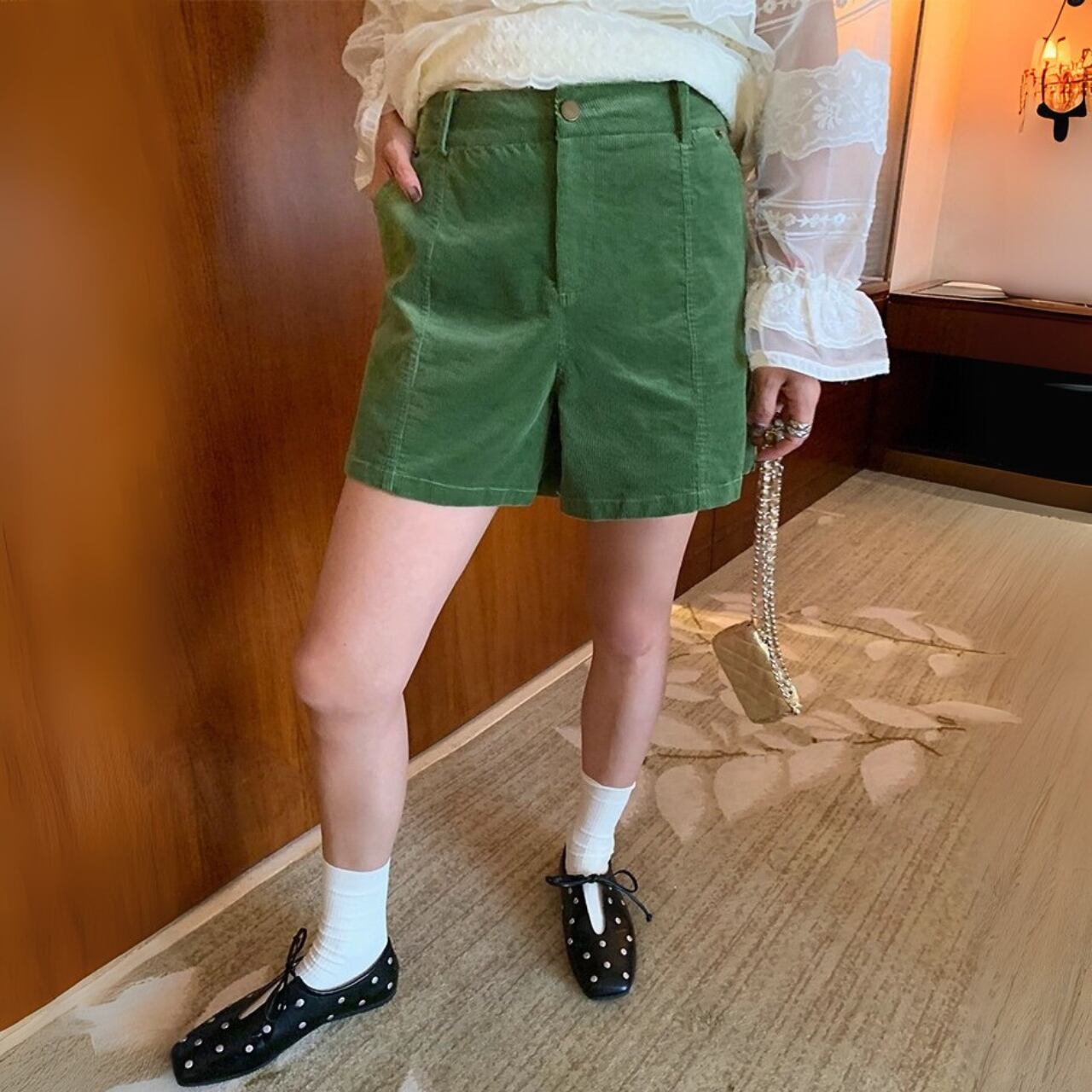 グリーンコーデュロイショートパンツ R01327