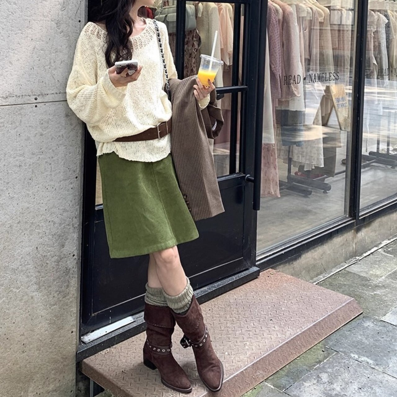 ウエストポーチコーデュロイミディスカート(4color) R01333