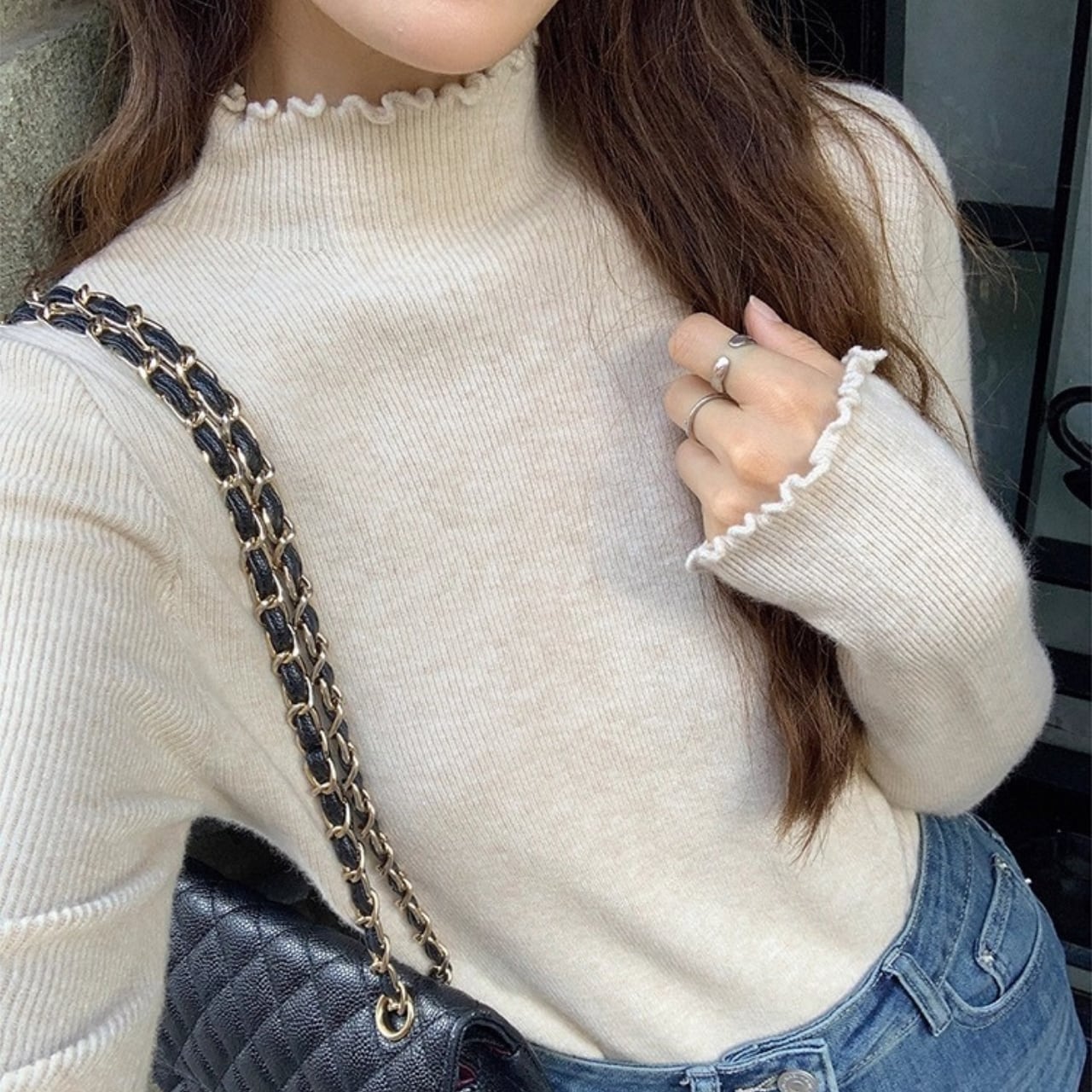 ボトルネックメロウリブニット(6color) R01404