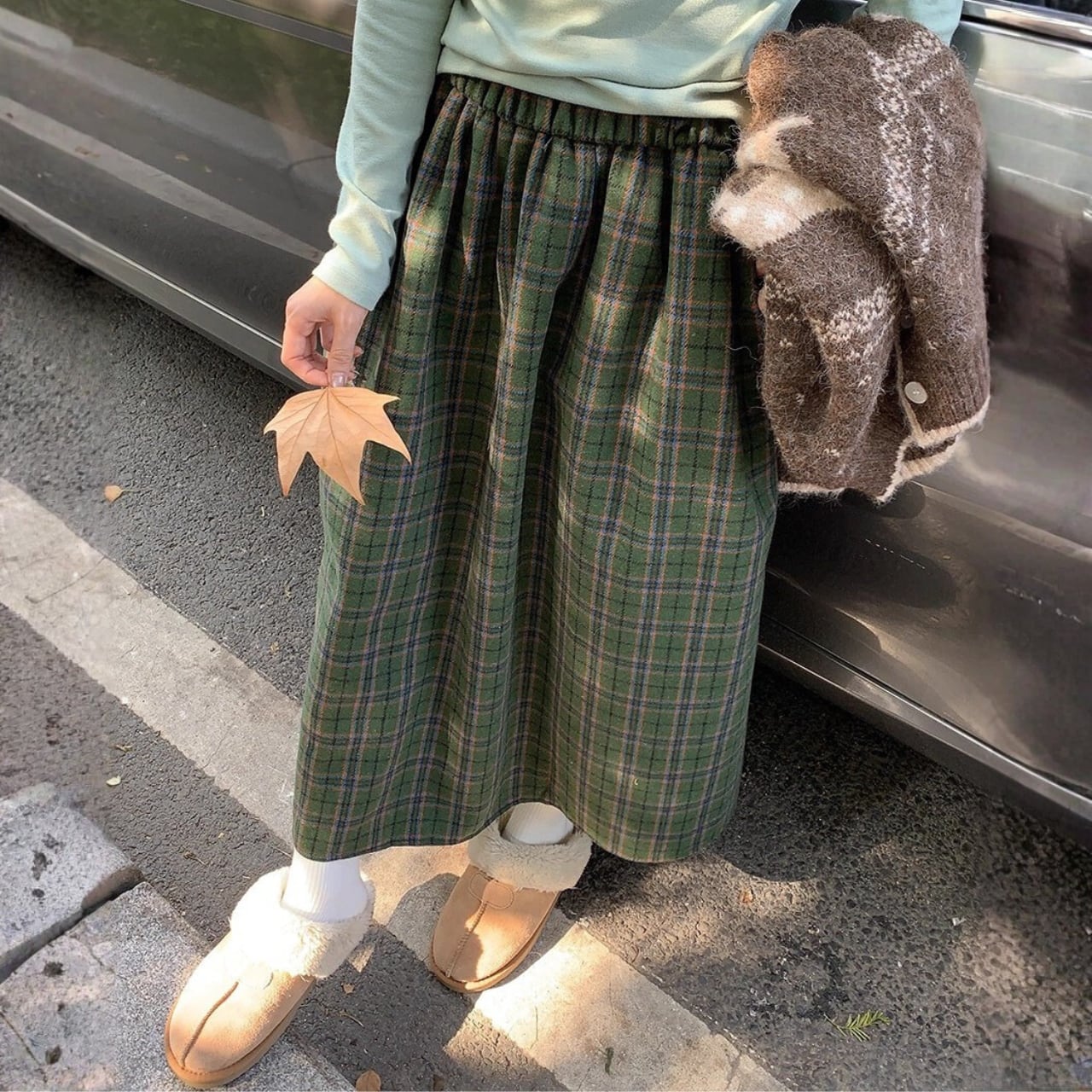 リラックスウォームチェックスカート R01399