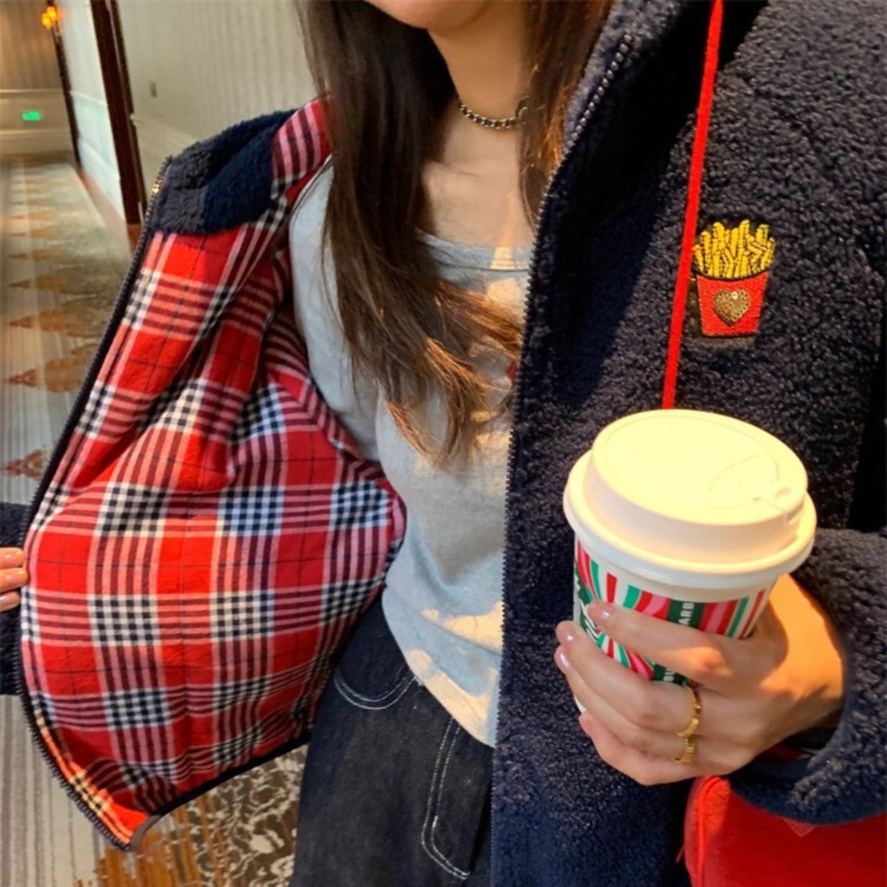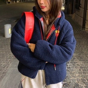 チェックライニングポテトボアブルゾン R01442