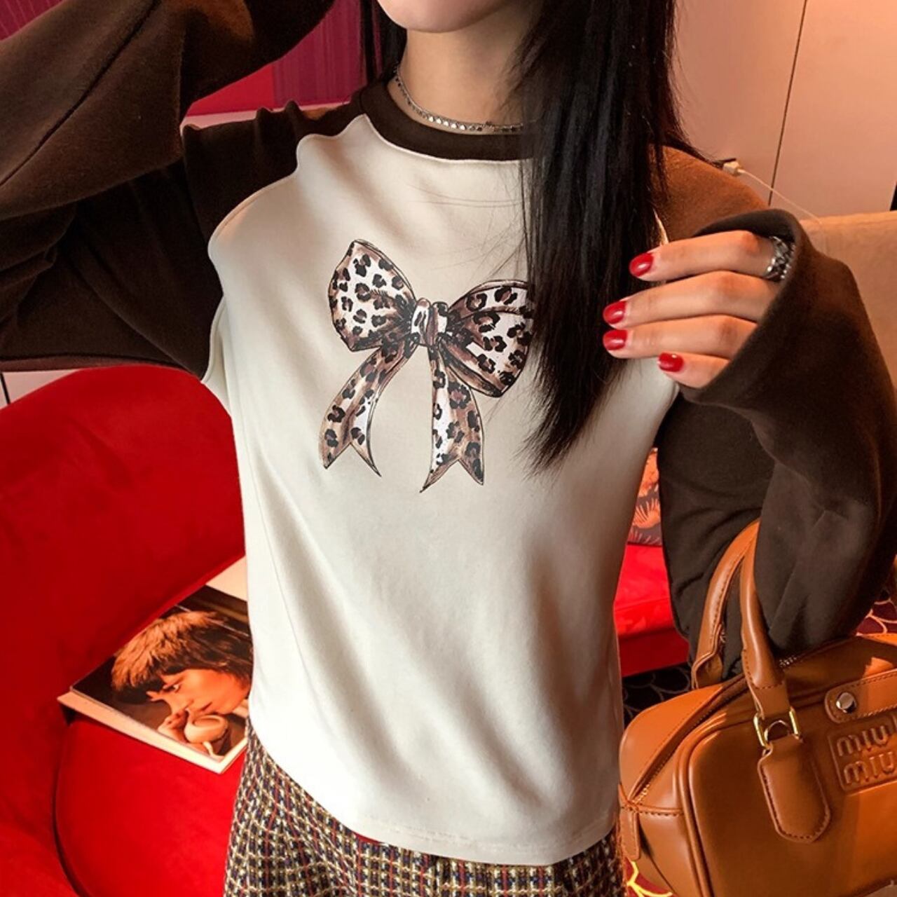 レオパードリボンラグランロンT R01473