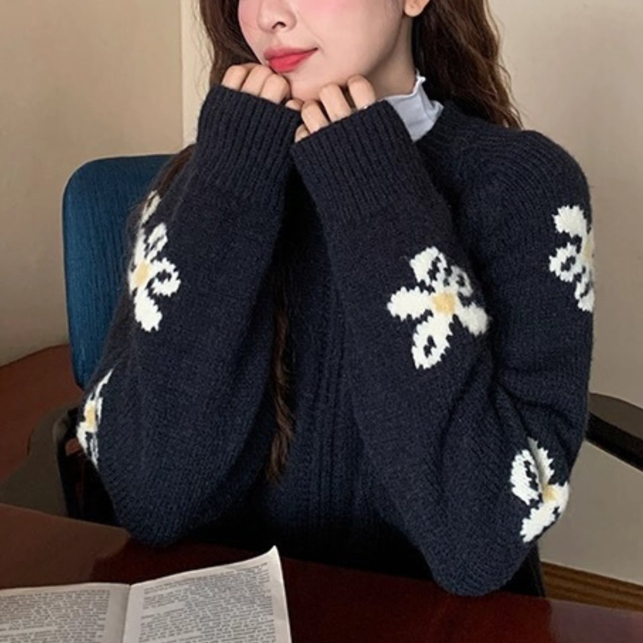 ホワイトフラワーダブルジップカーディガン(2color) R01486